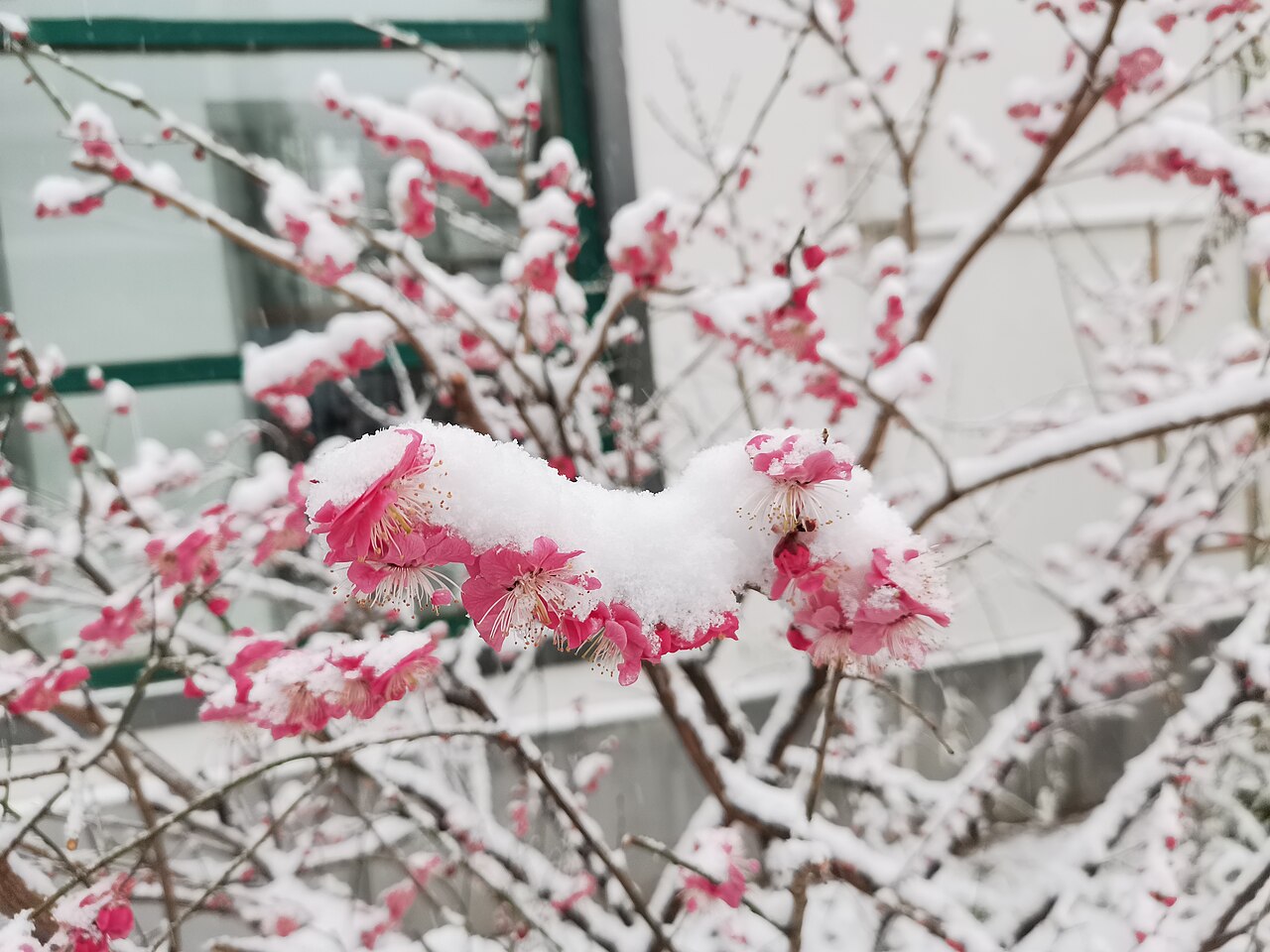 Heavy snow covering the blooming plum blossoms, Fumikas Sagisavas, Commons Wikimedia.