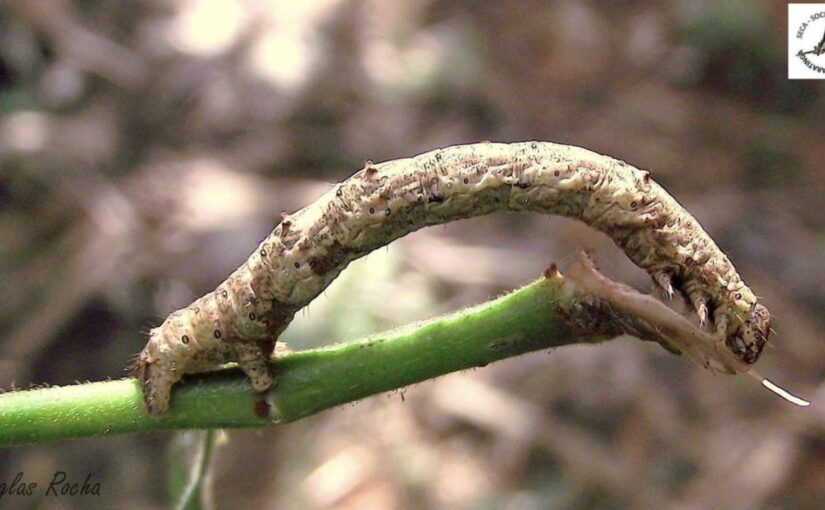 D. stellata is a smooth-looking, yellow-green or brown caterpillar (the perfect colors to help it camouflage and evade predators). It is about an inch long. Loopers, also known as inchworms, belong to the family Geometridae. The “geometers” are earth-measurers. They move by arching and stretching, giving the impression that they are measuring their journey. This specific species is a world traveler, and can be found in sub-Saharan Africa, the islands of the Indian Ocean, eastern Canada, the United States, Mexico, Brazil, Hawaii, and other destinations.